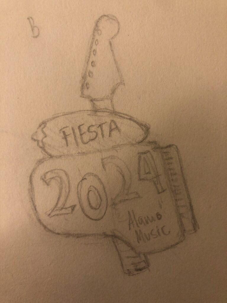 This was the first project I worked on for Alamo Music Center, a musical instrument store in San Antonio, which was looking to design a medal for the city’s annual Fiesta parade. The client wanted the medal to resemble the classic Fiesta street food fried chicken and jalapeño on a stick, but with the skewer replaced with a guitar neck, and the chicken with a grand piano. They provided me with the following images of the elements and examples of fiesta medals from other organizations.
