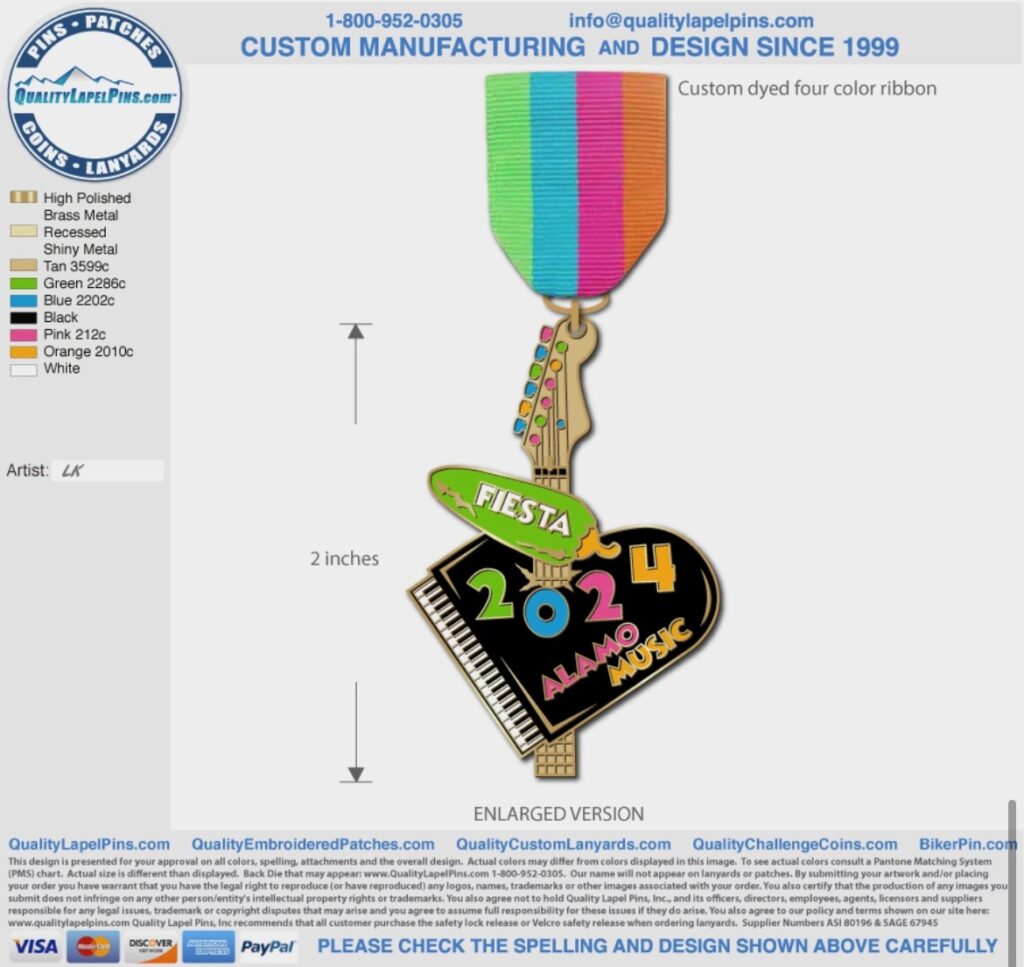 Alamo music sent the mock-ups to a third party manufacturer, which converted the concept into a finished design and produced the final medals (right).