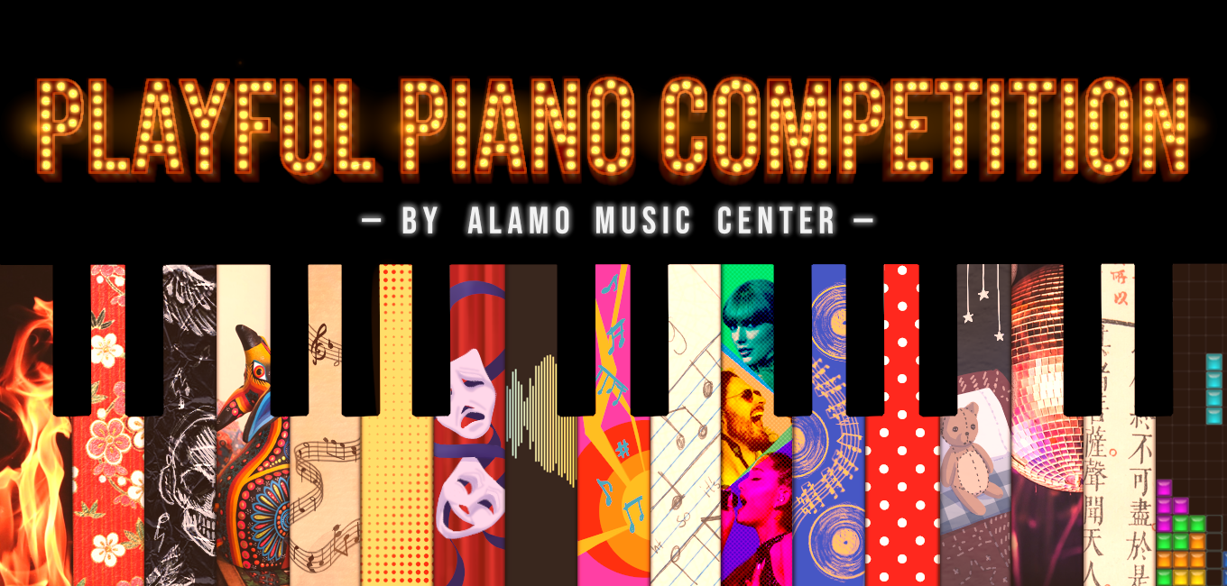 Alamo Music requested a high-energy and fun looking banner, which highlighted the main draw of the competition: that it was open to all styles of music. I achieved this with a keyboard graphic in which the keys represented diverse musical genres. I also designed a marquee font for an eye-catching and theatrical look, and as a reference to the Alamo Music storefront, with its iconic lightbulb-lined sign. This was used at the top of the banner and for a logo which could be simplified for smaller display.