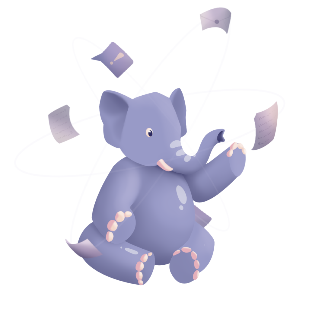Elephant wanted a logo and collection of graphics for a website which visually portrayed the applications and capabilities of their product. The first graphic I designed was a fully rendered elephant character who appears to be plucking a document out of a collection of different files flying around him, showcasing the AI’s standout features of document parsing and retrieval. The second graphic was a simple silhouette of an elephant, with a large brain with binary code defining the folds, to suggest a large capacity for memory and comprehension.